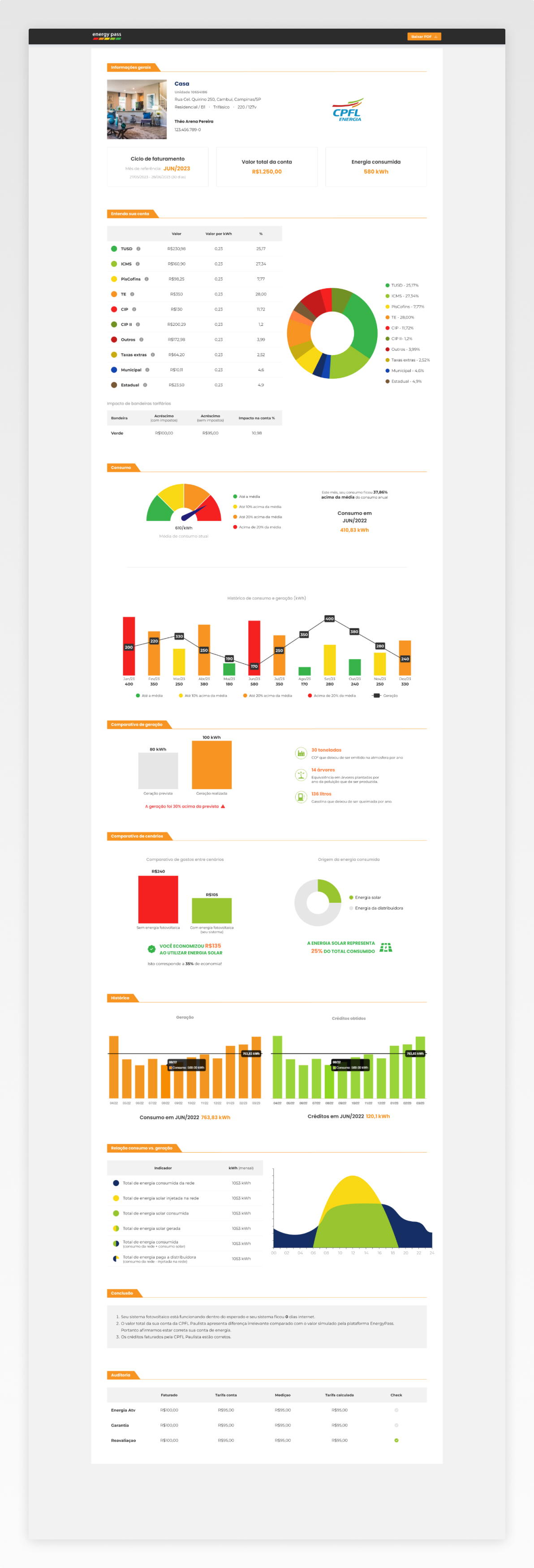 A Energypass é uma plataforma que fornece relatórios detalhados e análises para otimizar a eficiência energética, possibilitando economia nos gastos com energia por meio de uma gestão mais eficaz das tarifas e monitoramento do sistema de energia solar fotovoltaica.