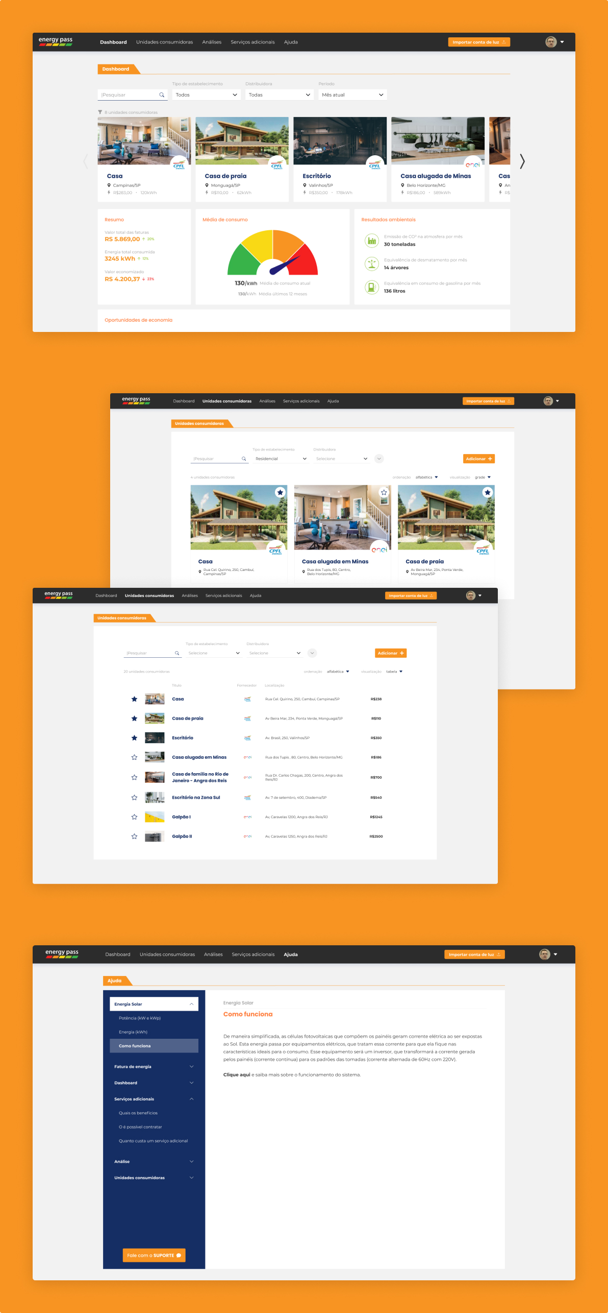 Criar uma experiência agradável e consistente, assegurando a autonomia e facilidade dos usuários na gestão de suas unidades de consumo de energia e na análise dos dados fornecidos pelo sistema.